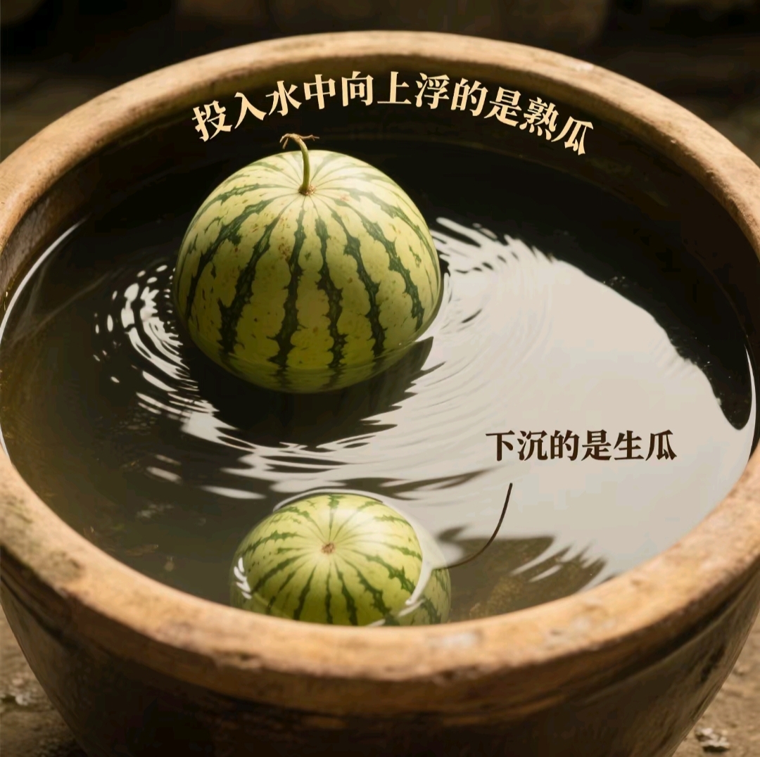 投入水中向上浮的是熟瓜;下沉的是生瓜。